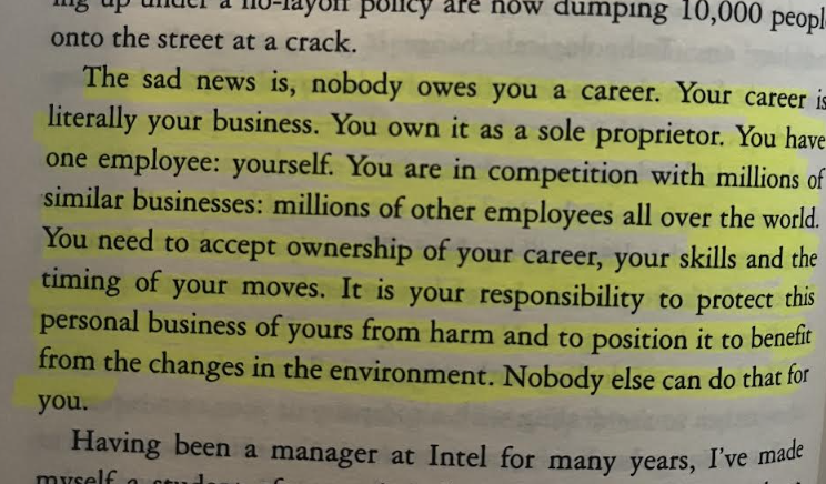AI dramatically accelerates the pace of change and obsolescence, making the responsibility for proactive adaptation solely the individual's. It's "You, Inc" (or "Du GmbH") 10x. As hard as it sounds this means constantly reskilling and upskilling yourself before the market forces you to do it, you cannot wait for your employer to train you. I know it doesn’t sound nice, but I am not here to write some honeyed words.